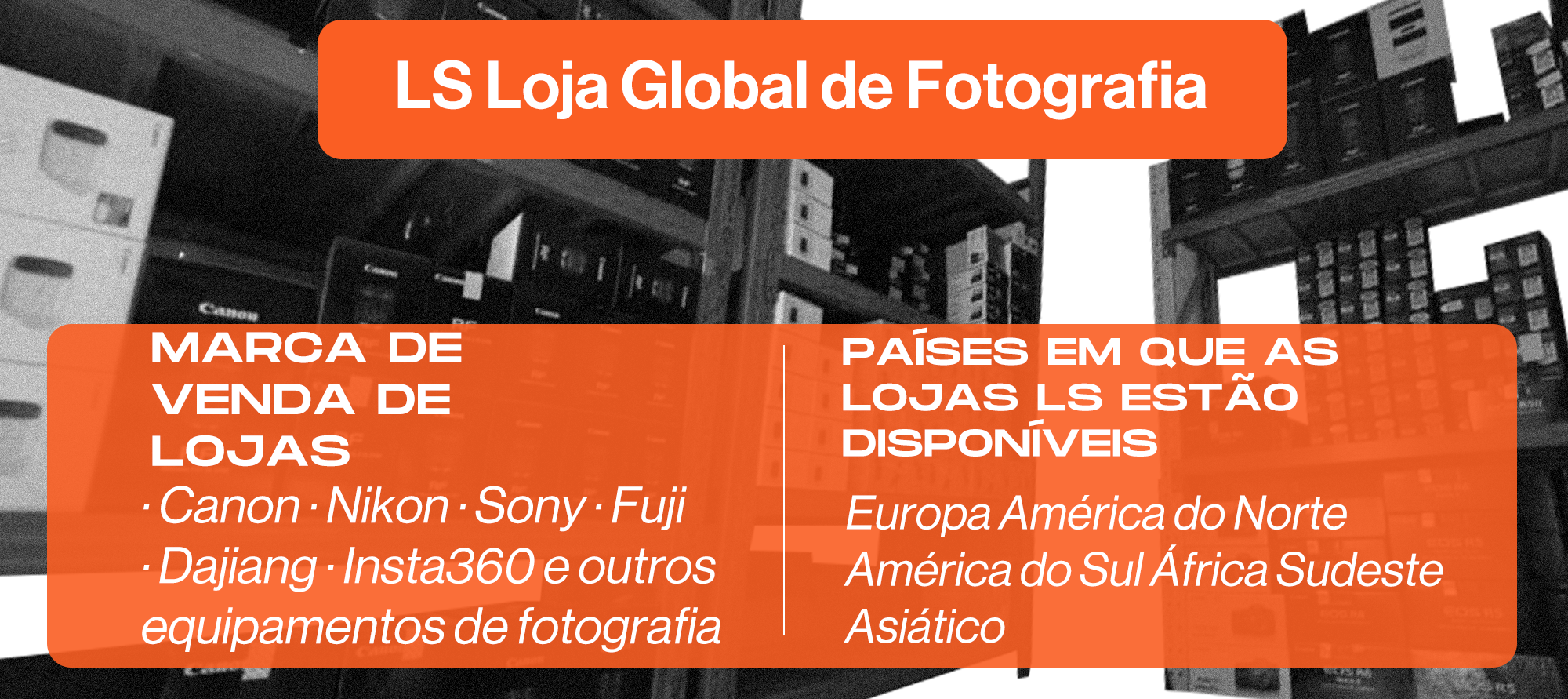 Selecione câmeras, lentes ou drones no site LS Photography Store.